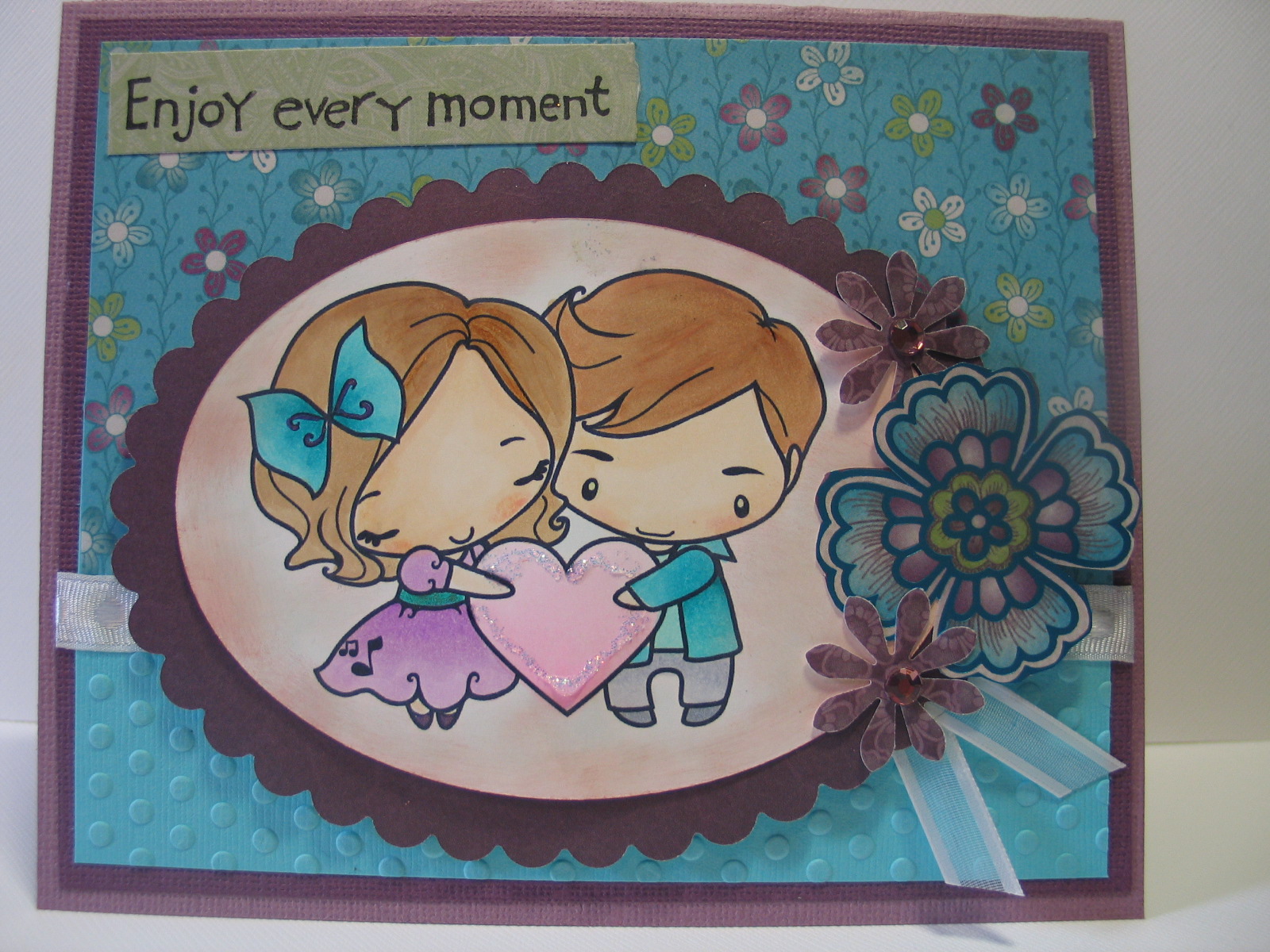 Well when I saw what had been made there seemed to be a strong mermaid theme going on and I did not want to ruin that!! So I quickly got a mermaid digi stamp from C.C. Designs who is called "Coral". What fun to colour and to add glitter to her tail.... yes I crossed boundaries by adding the "you're fintastic" - but oh well I think it suits the card :). The paper that really suits is from Imaginisce and the line is "Splash Dance" I also used one of my cuttlebug embossing folders and inked the bubbles to give a bit of water effect behind her. The shapes were cut from Spellbinder dies which are so good for cards. And yes I had fun colouring her with copic markers!! The phrase is a stamp from C.C. Designs too. Hope you like her!!